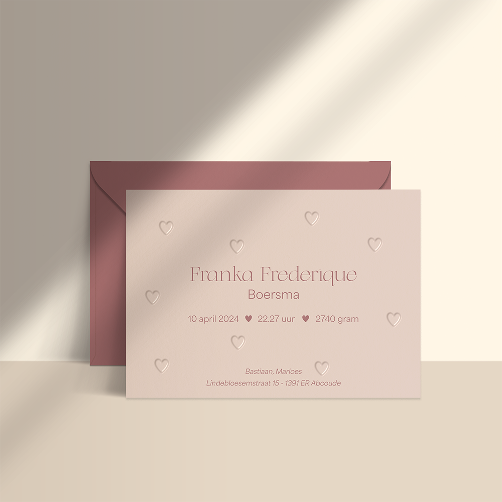 Geboortekaartje met hartjes in preeg